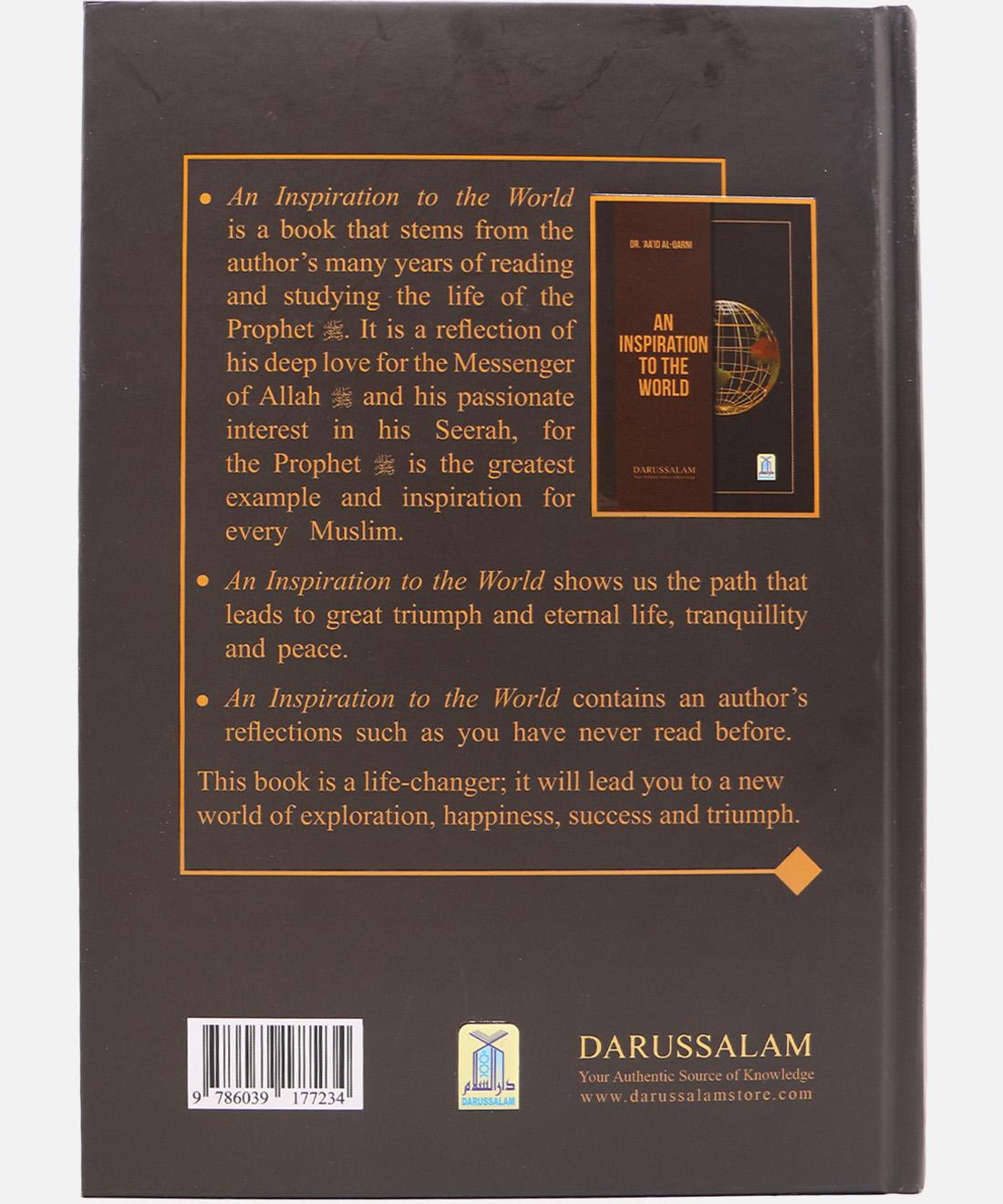 An Inspiration to the World is not a repetition of what has already been written about the Seerah, or an imitation of those who have written on this topic before me. It is not a collection of quotations or a list of reports. Rather it is based on reflection and contemplation of those reports, aimed at presenting the spirit of the Seerah and connecting it to people's everyday lives, by diving deep into its ocean, trying to discover its secrets, show its lights, highlight its objectives, display its uniqueness and discuss its benefits.