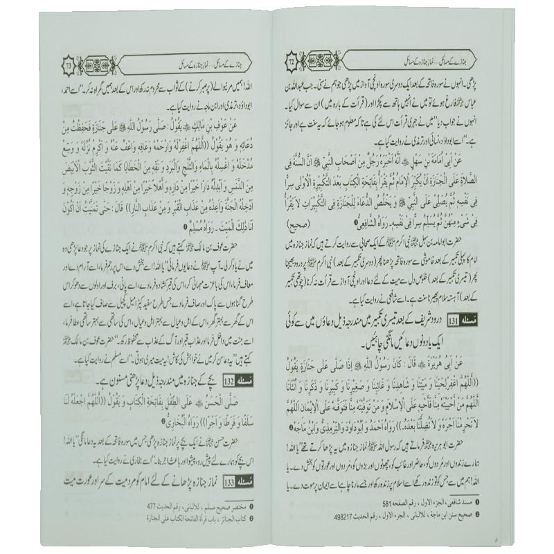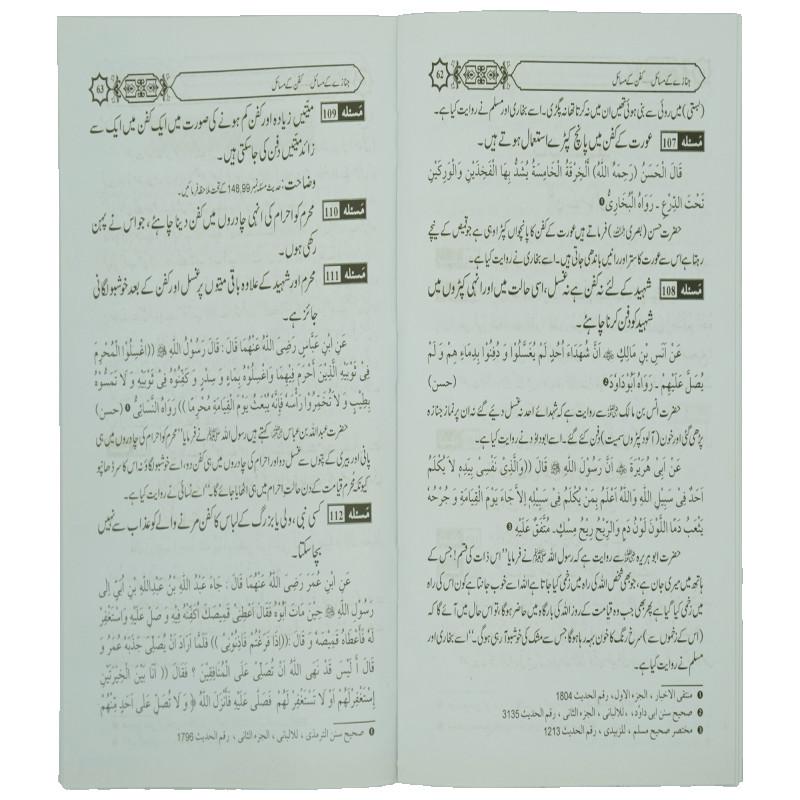 اس کتاب میں بیمار پرسی کے مسائل، موت اور میت کے مسائل، تعزیت کے مسائل، غسل میت کے مسائل، کفن کے مسائل، نماز جنازہ کے مسائل، تدفین کے مسائل، زیارت قبور کے مسائل اور ایصال ثواب کے مسائل کے علاوہ زیارت قبور اور ایصال ثواب کی بدعات بھی واضح کی گئی ہیں۔
