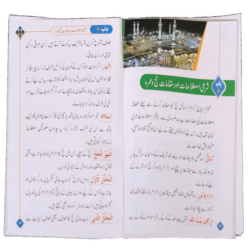 It is a beautiful full color illustrated book regarding how to perform Hajj or Umrah according to the Sunnah of Prophet Muhammad (Peace and Blessings of Allah be upon him) in the Urdu language. Includes pictures and diagrams describing the topics being covered.