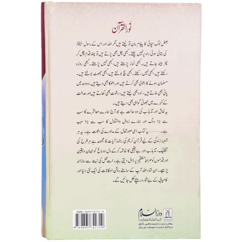 بعض اہل علم وقلم نے اس کے موضوعات ومضامین پر قلم اٹھایا ااور بعض نے اس کی انڈیکسنگ اور اشاریہ بندی کی جانب توجہ کی ۔ مختلف اہل علم نے اس حوالے سے كئی کتب تصنیف کی ہیں علامہ وحید الزمان کی ’’تبویب القرآن فی مضامین الفرقان ‘‘، شمس العلماء مولانا سید ممتاز علی کی ’’ اشاریہ مضامین قرآن ‘‘ اور ’’مضامین قرآن‘‘از زاہد ملک قابل ذکر ہیں۔ زیر تبصرہ کتاب’’ نورالقرآن‘‘ ڈاکٹر سہیل انجم صاحب اور ان کی اہلیہ محترمہ کی مشترکہ ایک منفرد کاوش ہے ۔ یہ کتاب ہر شعبۂ زندگی کےلیے قرآنی تعلیمات کابڑا آسان اور جامع مجموعہ ہے۔فاضل مصنف نے صحیح دینی زندگی کےعنوانات ترتیب وار چنے ہیں ایمانیات، عبادات،اخلاقیات او رجملہ معاملات کےتحت 61 ابواب مقرر کیے ہیں اور ہرباب کی مناسبت سےقرآن کریم کی آیات درج کر کےان کی دلنشیں تشریح کی ہے۔یہ کتاب قرآنی مضامین اور حوالوں پر مشتمل ایک جامع کتاب ہے۔ مفسر قرآن حافظ صلاح الدین یوسف کی نظرثانی سے اس کتاب کی اہمیت وافادیت مزید دو چند ہوگئی ہے