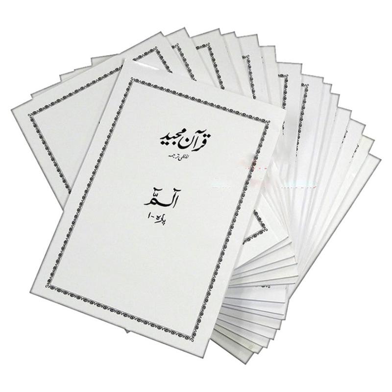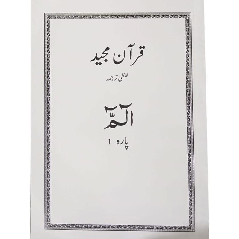 White Urdu Translation Para Set Juz 1-30 By Al Huda Publications. this is very interested. Arabic text is translated by hand under each word with extra space below for students to write notes.
