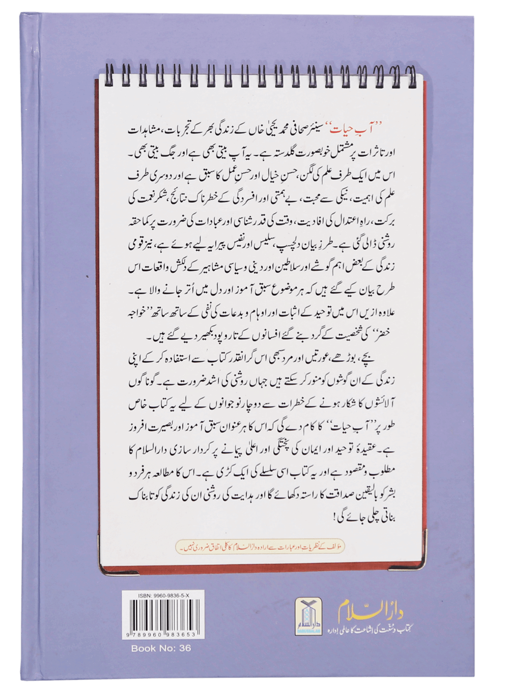 زیر تبصرہ کتاب` آب حیات` کہنہ مشق صحافی محترم محمد یحیی خان صاحب کی تصنیف ہے، جس میں انہوں نے اپنے مشاہدات، لوگوں سے ڈیلنگ اور اپنی زندگی کے تجربات کی روشنی میں نوجوان نسل کو کامیاب زندگی گزانے کے آفاقی اصول اور گر سکھلائے ہیں۔اللہ تعالی سے دعا ہے کہ وہ تمام مسلمانوں کو تمام میدانوں میں کامیاب فرمائے اور ان کی دنیا وآخرت دونوں جہانوں کو بہترین بنا دے۔کیونکہ میں سمجھتا ہوں کہ انسان کے لئے سب سے بڑی کامیابی یہ ہے کہ اسے جہنم سے بچا لیا جائے اور اسے جنت میں داخل کر دیا جائے۔اللہ تعالی ہمیں صراط مستقیم پر چلائے اور ہم سب کی مغفرت فرمائے