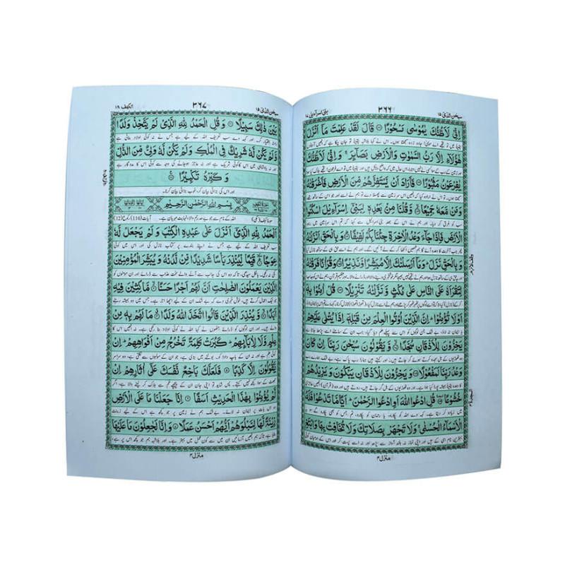 This copy of Quran has standard Pakistani script followed by the Urdu translation by the renowned scholars Hafiz Abdus Salam Bin Muhammad. It has 12 lines per page with beautiful cover. Its clear and standard font made it easy to read/recite it for Muslims.