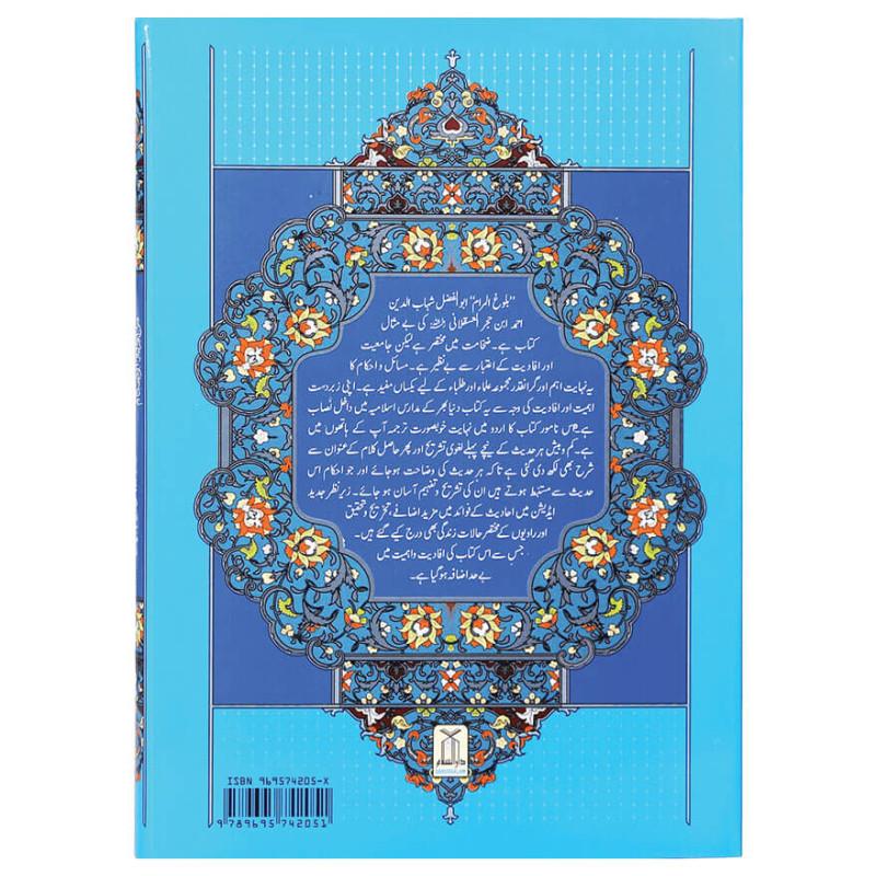 "بلوغ المرام" ابو افضل شہاب الدین احمد ابن حجر العسقلانی کی بے مثال کتاب ہے۔ ضخامت میں مختصر ہے لیکن جامعیت اور افادیت کے اعتبار سے بے نظیر ہے۔ مسائل و احکام کا یہ نہایت اہم اور گرانقدر مجموعہ علماء اور طلباء کے لیے یکساں مفید ہے۔ اپنی زبردست اہمیت اور افادیت کی وجہ سے یہ کتاب دنیا بھر کے مدارس اسلامیہ میں داخل نصاب ہے۔ اس نامور کتاب کا اردو میں نہایت خوبصورت ترجمہ آپ کے ہاتھوں میں ہے۔ کم و بیش ہر حدیث کے نیچے پہلے لغوی تشریح اور پھر حاصل کلام کے عنوان سے شرح بھی لکھ دی گئی ہے تا کہ ہر حدیث کی وضاحت ہوجاۓ اور جو احکام اس حدیث سے مستنبط ہوتے ہیں ان کی تشریح و تفہیم آسان ہو جاۓ ۔ زیر نظر جدید ایڈیشن میں احادیث کے فوائد میں مزید اضافے،تخریج وتحقیق اور راویوں کے مختصر حالات زندگی بھی درج کیے گئے ہیں۔ جس سے اس کتاب کی افادیت واہمیت میں بے حد اضافہ ہوگیا ہے۔