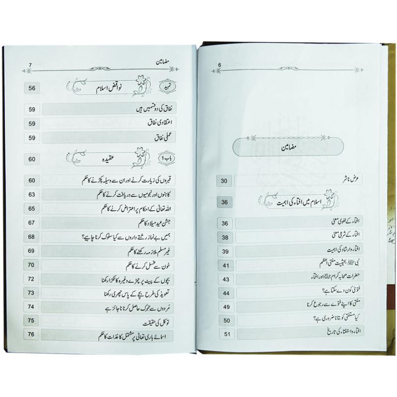 مختلف گھرانوں کی خواتین کوخانگی زندگی کےنشیب وفرازمیں بہت سی الجھنیں اورمسائل پیش آئے۔انھوں نےرہنمائی حاصل کرنے کے لیے سعودی عرب کے اجل علمائے کرام سے رجوع کیا تو ان رجال کبارنے قرآن و سنت کی روشنی میں فتوے جاری فرمائے – یہ کتاب انھی بیش بہا فتووں کا مجموعہ ہے اس میں ان تمام مشکلات اور مسائل کادینی حل آسان الفاظ میں بتا دیا گیا ہے جو ہماری محترم خواتین کو وقتاً فوقتاً پیش آتے رہتے ہیں