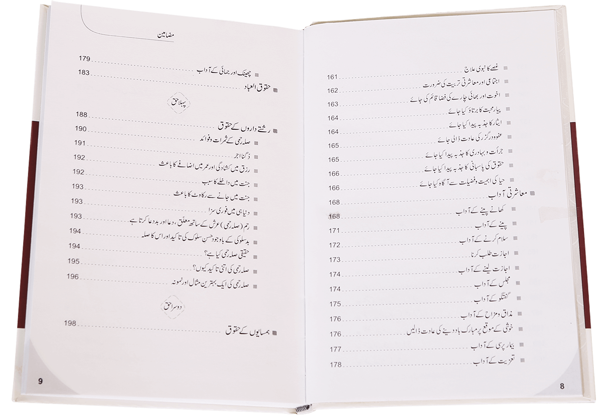 ہمارے معاشرے کے بگاڑ کا اصل سبب یہ ہے کہ ہر شخص صرف اپنے نفع و نقصان کا ترازو تھامے بیٹھا ہے جس کے نتیجے میں دوسروں کے حقوق پامال ہو رہے ہیں او راپنے فرائض سے غفلت برتی جارہی ہے ۔جب تک یہ صورت حال نہیں بدلتی اور تمام حقداروں کے حقوق بخیر و خوبی ادا کرنے کا احساس پیدا نہیں ہوتا ،معاشرے کی حالت اعتدال پر نہیں آئے گی۔مفسر قرآن حافظ صلاح الدین صاحب یوسف نے زیر نظر کتاب میں اسی بات کو اجاگر کیا ہے ۔حافظ صاحب موصوف نے حقوق اللہ ،حقوق الوالدین،حقوق الزوجین،حقوق الاولاد اور حقوق العباد کے زیر عنوان ہر فرد کے حقوق و فرائض کو کتاب وسنت کی روشنی میں بیان کیا ہے ۔اہل اسلام کو اس کتاب کا مطالعہ لازماً کرنا چاہیے تاکہ اپنے فرائض اور دوسروں کے حقوق سے آگاہی ہو سکے اور ایک خوبصورت اور پر امن معاشرے کی بنیاد رکھی جا سکے