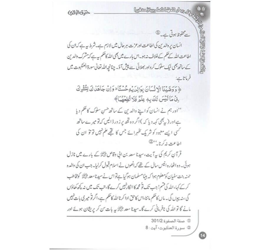 حقوق العباد میں سے سب سے مقدم حق والدین کا ہے۔ اور یہ اتنا اہم حق ہے کہ اللہ تعالیٰ نے اپنے حق ِعبادت کے جس حق ذکر کیا ہے وہ والدین کا حق ہے ۔والدین کا حق یہ کہ ان کے ساتھ حسنِ سلوک کیا جائے ان کا مکمل ادب واحترم کیا جائے ،نیکی اور بھلائی کے کاموں میں ان کی اطاعت وفرنبرداری کی جائے اور ہمیشہ ان کے سامنے سرتسلیم خم کیا جائے ۔ قرآں وحدیث سے یہ بات بہت واضح ہو کر سامنے آتی ہے کہ والدین سے حسنِ سلوک سے رزق میں فراوانی اور عمر میں زیادتی ہوتی ہے ۔ جب کہ والدین کی نافرمانی کرنے والا او ران کے ساتھ حسن سلوک سے پیش نہ آنے والا اللہ کی رحمت سے دور ہوجاتا ہے اور بالآخر جہنم کا ایندھن بن جاتاہے ۔