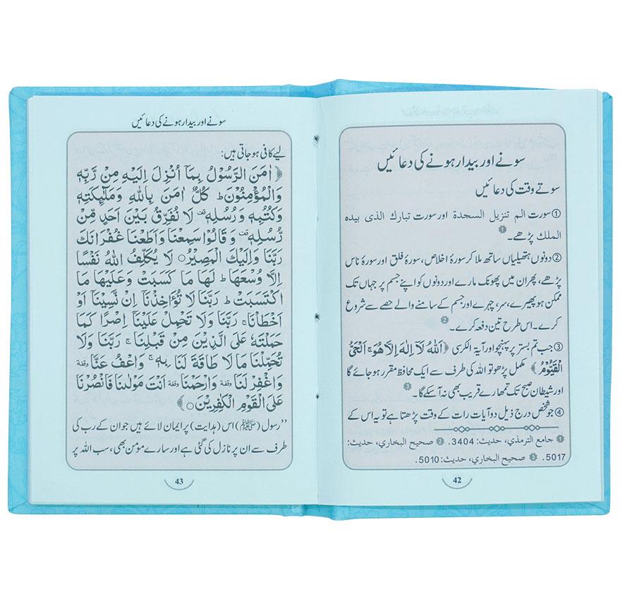 - Each prayer is written in Arabic script with Urdu translation.