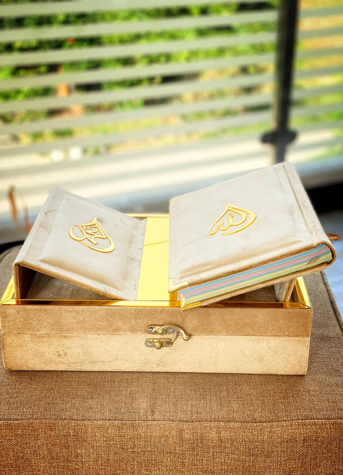 This Beautiful Quran e Pak in 16 lines per page with a beautiful Velvet cover on it and the Box. Its clear and Best with Tajweed made it easy to read/recite in 16 Lines for Muslims. This is one of the best gift pack Quran Pak.