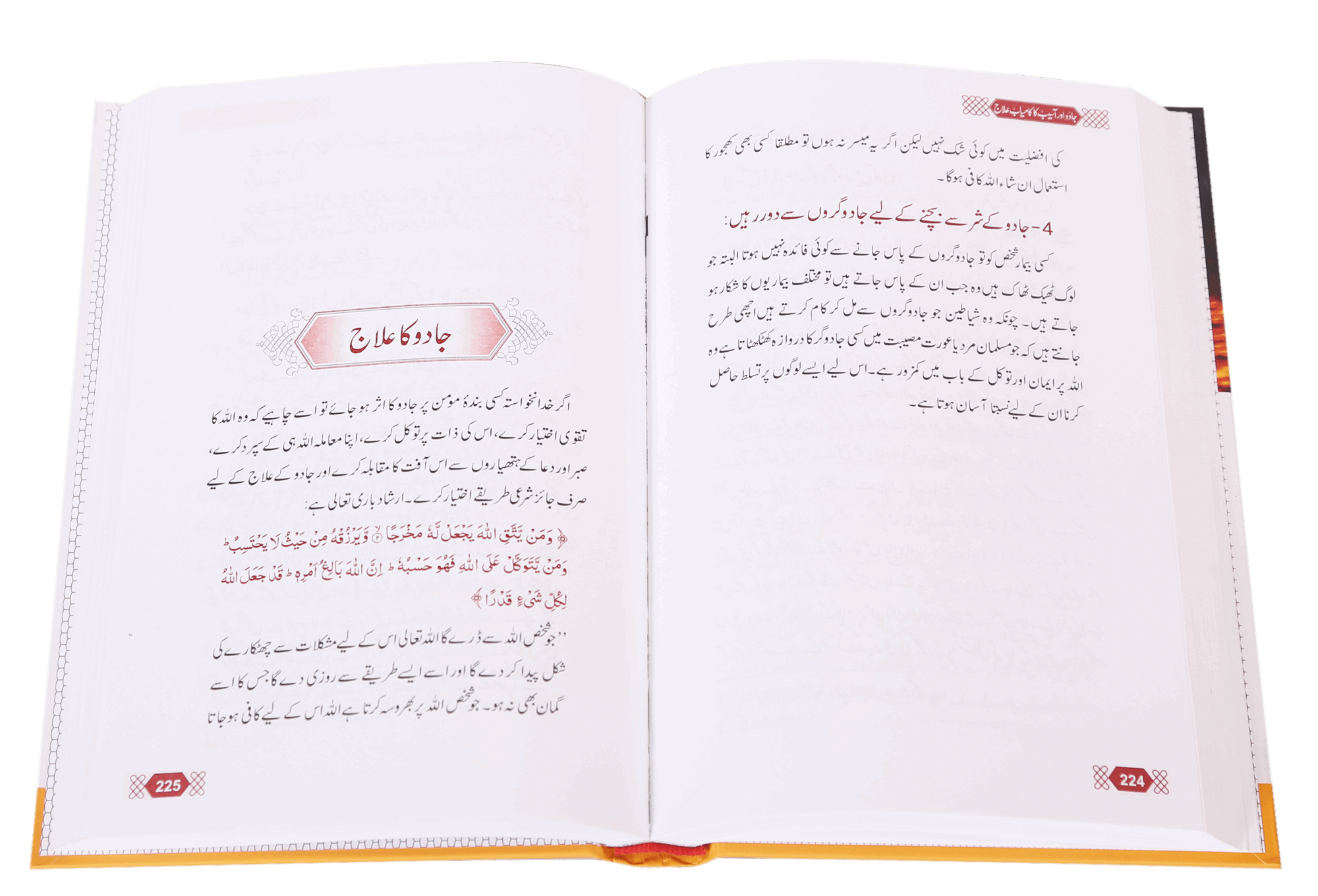 جادو اور جنات سے تعلق رکھنے والی بیماریوں کے علاج کےلیے کتاب وسنت کے بیان کردہ طریقوں سے ہٹ کر بے شمار لوگ شیطانی اور طلسماتی کرشموں کے ذریعے ایسے مریضوں کاعلاج کرتے نظر آتے ہیں جن کی اکثریت تو محض وہم وخیال کے زیر اثر خود کو مریض سمجھتی ہے ۔جادوکا موضوع ان اہم موضوعات میں سے ہے جن کا بحث وتحقیق اور تصنیف وتالیف کے ذریعے تعاقب کرنا علماء کےلیے ضروری ہے کیونکہ جادو عملی طور پر ہمارے معاشروں میں بھر پور انداز سے موجود ہے اور جادوگرچند روپوں کے بدلے دن رات فساد پھیلانے پر تلے ہوئے ہیں جنہیں وہ کمزور ایمان والے اور ان کینہ پرور لوگوں سے وصو ل کرتے ہیں جو اپنے مسلمان بھائیوں سے بغض رکھتے ہیں او رانہیں جادو کے عذاب میں مبتلا دیکھ کر خوشی محسوس کرتےہیں