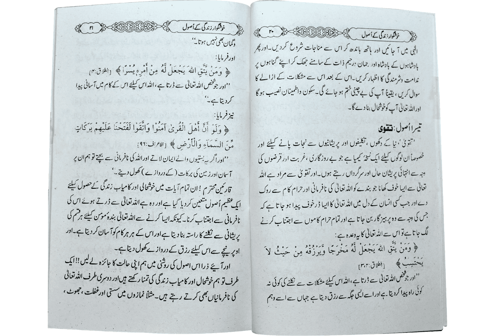 اس مختصر رسالے میں ایک کامیاب اور خوشحال زندگی کے حصول اورپریشانیوں و آزمائشوں سے نجات حاصل کرنے کے چند اصول ذکر کیے گئے ہیں