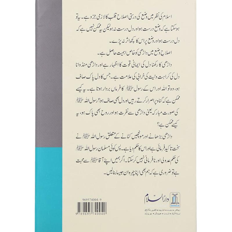 `اسلام کی نظر میں وضع کی درستی اصلاح قلب کا لازمی جزو ہے۔ یہ تو ہو سکتا ہے کہ وضع درست ہو اور دل درست نہ ہو لیکن یہ ممکن نہیں ہے کہ دل درست ہو اور وضع پر اس کا کچھ اثر نہ پڑے۔ اصلاحِ وضع میں داڑھی کو خاص اہمیت حاصل ہے۔ داڑھی کا رکھنا دل کی ایمانی قوت کا اظہار ہے اور داڑھی منڈوانا دل کی کراہت و نیت کی خرابی کی علامت ہے۔ جس کا دل پاک صاف ہو، وہ تو اللہ اور اس کے رسول ﷺ کا فرماں بردار ہوتا ہے۔ یہ کیسے ممکن ہے کہ گنا ہ پر اصرار کرتے رہیں اور دل بھی صاف ہو؟ رسول اللہ ﷺ کی صورت مبارکہ یعنی داڑھی سے نفرت ہو اور روح بھی پاک ہو، یہ کیسے ممکن ہے؟ داڑھی بڑھانے اور مونچھیں کٹانے کے متعلق رسول اللہ ﷺ نے سخت تاکید فرمائی ہے اور اس کا حکم دیا ہے۔ پس کوئی مسلمان رسول اللہ ﷺ کی حکم عدولی اور نا فرمانی نہیں کر سکتا۔ اگر ہمیں اپنے آقا ﷺ سے محبت ہے تو ضروری ہے کہ ہم بھی اپنا چہرہ اس جیسا بنا لیں۔ `