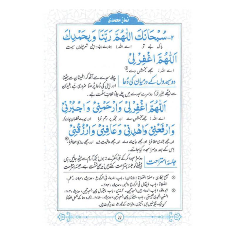 نماز کی ادائیگی کا طریقہ جاننا ہر مسلمان مرد وزن کےلیے ازحد ضروری ہے کیونکہ اللہ عزوجل کے ہاں وہی نماز قابل قبول ہوگی جو رسول اللہ ﷺ کے طریقے کے مطابق ادا کی جائے گی اسی لیے آپ ﷺ نے فرمایا صلو كما رأيتموني اصلي۔ لہذا ہر مسلمان کےلیے رسول للہ ﷺ کے طریقۂ نماز کو جاننا بہت ضروری ہے۔ زیر تبصرہ کتاب ’’نماز محمد ی او رمسنون دعائیں صحیح احادیث کی روشنی میں ‘‘ پاکٹ سائز مفسر قرآن مولانا حافظ صلاح الدین یوسف کی کاوش ہے جس میں انہو ں آپ ﷺ کی نماز کا مستند ،صحیح اور مسنون نقشہ بڑی تحقیق اور شرعی ذمہ دار ی کے ساتھ پیش کیا ہے۔ہمیں خود اپنی نمازوں کومسنون بنانا چاہیے اور دوسروں کوبھی اس کی طرف متوجہ کرنا چاہیے۔