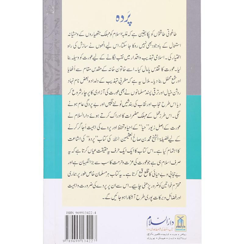 طاغوتی طاقتوں کو پکا یقین ہے کہ غلبہ اسلام کو مہلت ہتھیاروں کے وحشیانہ استعمال کے باوجود بھی نہیں روکا جا سکتا، اس لیے انھوں نے سازش کی راہ اختیار کی۔ اسلامی تہذیب و اقدار میں نقب لگانے کے لیے عورت کو وسیلہ بنا لیا۔ عورت کا تقدس پامال کیا۔ اسے خاتون خانہ کے مقدس مقام سے اُٹھایا اور شمع محفل بنا دیا۔ ملال یہ ہے کہ مغربی تہذیب کے دلدادہ بعض نام نہاد روشن خیال اور ترقی پسند مسلمانوں نے بھی عورت کی آزادی کا پرچار شروع کر دیا اس طرح حجاب اور نقاب کی بندشیں ٹوٹنے لگیں اور بے پردگی عام ہونے لگی۔ اس طرز عمل کے مہلت مضمرات کا ادراک کرتے ہوئے دارالسلام نے عورت کے اصل زیور `حیا` کے احیا و تحفط اور پردے کی اہمیت اُجاگر کرنے کے لیے فضیلۃ الشیخ محمد بن صالح العثیمین ؒ کی کتاب `پردہ` کی اشاعت کا اہتمام کیا ہے۔