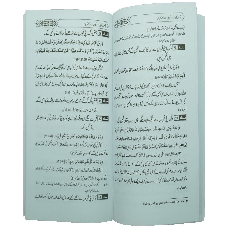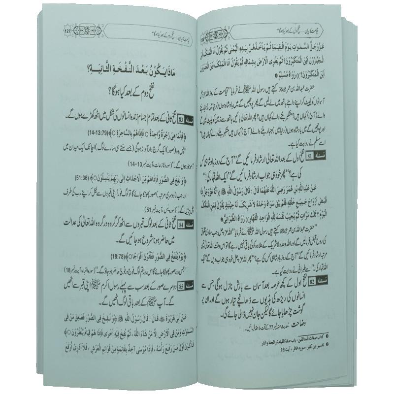 اس کتاب میں قیامت پر ایمان کا وجوب، قیامت کے دلائل، صور کا بیان، حشر کا بیان، عدالت الٰہی کا منظر، حوض کوثر، شفاعت، حساب کتاب، میزان، پل صراط، قنطرہ اور آخری منزل جنت یا جہنم کے مسائل قرآن و حدیث کی روشنی میں بیان کیے گئے ہیں۔