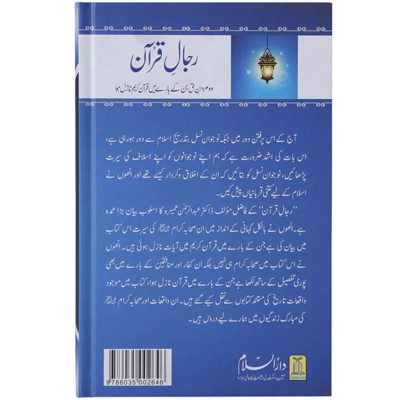 ہے ، اس بات کی اشد ضرورت ہے کہ ہم اپنے جوجوانوںکو اپنے اسلاف کی سیرت پڑھائیں، نوجوان نسل کو بتائیں کہ ان کہ اخلاق و کردار کیسے تھے اور انھوں نے اسلام کے لیے کتنی قربانیاں پیش کیں۔ `رجالِ قران` کے فاضل مولف ڈاکٹر عبدالرحمن عمیرہ کا اسلوب بیان بڑا عمدہ ہے۔ انھوں نے بلکل کہانی کے انداز میں ان صحابہ کرام کی سیرت اس کتاب میں بیان کی ہے جن کے بارے میں قران کریم میں آیات نازل ہوئی ہیں۔ انھوں نے اس کتاب میں صحابہ کرام ہی نہیں بلکہ ان کفار اور منافقین کے بارے میں بھی پوری تفصیل کے ساتھ لکھا ہے جن کے بارے میں قران نازل ہوا، کتاب میں موجودواقعات تاریخ کی مستند کتابوں سے نقل کیے گئے ہیں۔ ان واقعات اور صحابہ کرام کی مبارک زندگیوں میں ہمارے لیے نہایت قیمتی درس موجود ہیں۔