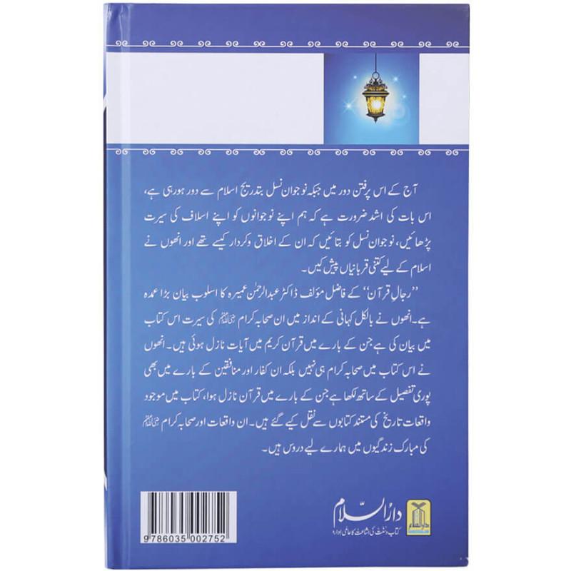 آج کے اس پر فتن دور میں جبکہ نوجوان نسل بتدریج اسلام سے دور ہو رہی ہے ، اس بات کی اشد ضرورت ہے کہ ہم اپنے جوجوانوںکو اپنے اسلاف کی سیرت پڑھائیں، نوجوان نسل کو بتائیں کہ ان کہ اخلاق و کردار کیسے تھے اور انھوں نے اسلام کے لیے کتنی قربانیاں پیش کیں۔ `رجالِ قران` کے فاضل مولف ڈاکٹر عبدالرحمن عمیرہ کا اسلوب بیان بڑا عمدہ ہے۔ انھوں نے بلکل کہانی کے انداز میں ان صحابہ کرام کی سیرت اس کتاب میں بیان کی ہے جن کے بارے میں قران کریم میں آیات نازل ہوئی ہیں۔ انھوں نے اس کتاب میں صحابہ کرام ہی نہیں بلکہ ان کفار اور منافقین کے بارے میں بھی پوری تفصیل کے ساتھ لکھا ہے جن کے بارے میں قران نازل ہوا، کتاب میں موجودواقعات تاریخ کی مستند کتابوں سے نقل کیے گئے ہیں۔ ان واقعات اور صحابہ کرام کی مبارک زندگیوں میں ہمارے لیے نہایت قیمتی درس موجود ہیں۔