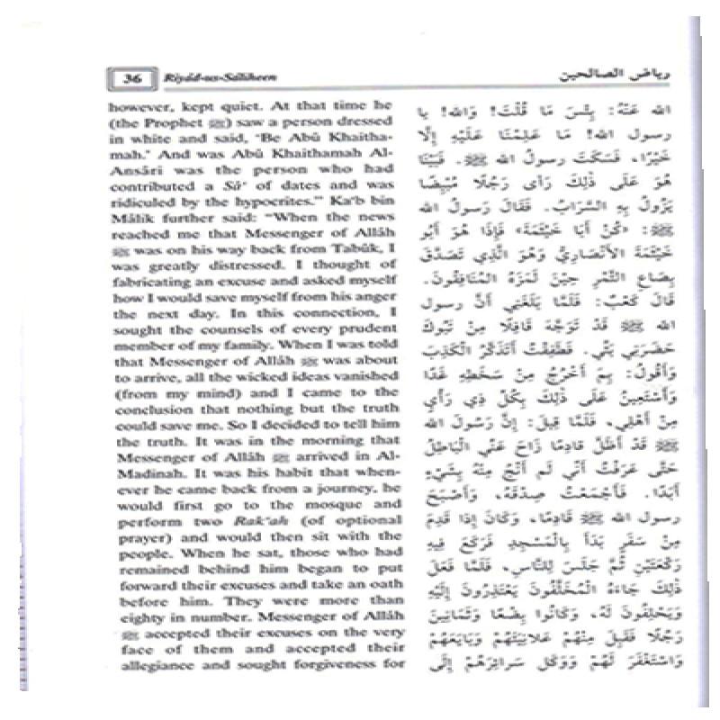 An extremely popular and useful compilation of authentic hadith. Covering every aspect of Islamic belief and moral conduct, it selects approximately 2000 hadith from the six major collections: Bukhari, Muslim, Abu Dawood, Tirmidhi, An-Nisai and Ibn Majah. It serves as an excellent hadith primer and daily reader. Wide range of topics: sincerity of purpose, spending in the way of Allah, rules of fasting, seeking knowledge, attending funerals and safeguarding the Quran. Arabic text, as well as the English translation, are presented here in this handsome hardcover two volume set. Riyadh us Salihen comprises of about 2000 ahadiths in 372 Chapters and 19 Sections: The Book of Good Manners - The Book about the Etiquette of Eating - The Book of Dress -The Book of the Etiquette of Sleeping, Lying and Sitting, etc.- The book of Greetings - The Book of Visiting the Sick - The Book of Etiquette of Traveling - The Book of Virtues - The Book of I`tikaf - The Book of Hajj - The Book of Jihad - The Book of Knowledge - The Book of Praise and Gratitude to Allah - The Book of Supplicating Allah to Exalt the Mention of Allah`s Messenger (PBUH) - The Book of the Remembrance of Allah - The Book of Du`a (Supplications) - The Book of the Prohibited Actions - The Book of Miscellaneous Ahadith of Significant values - and The Book of Forgiveness.