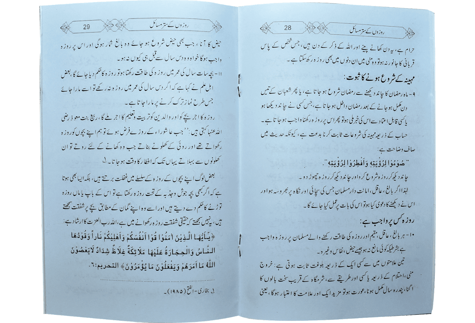 یہ رسالہ روزہ کے مختصر احکام پر مشتمل ہے جس میں اسکے آداب وسنن کا مختصراذکر ہے،چونکہ اس عبادات کی شان بڑی عظیم ہے،اس کے احکام کا سیکھنا بھی ضروری ہے،تاکہ مسلمان کو واجب چیزوں کا علم ہواور وہ اسے بجالاسکے،حرام کا پتہ ہو جس کی بناء پر اس سے بچ سکے اور مباحات کی خبر ہو تاکہ خود سے محروم کرکے مشقت میں مبتلا نہ کر لے۔