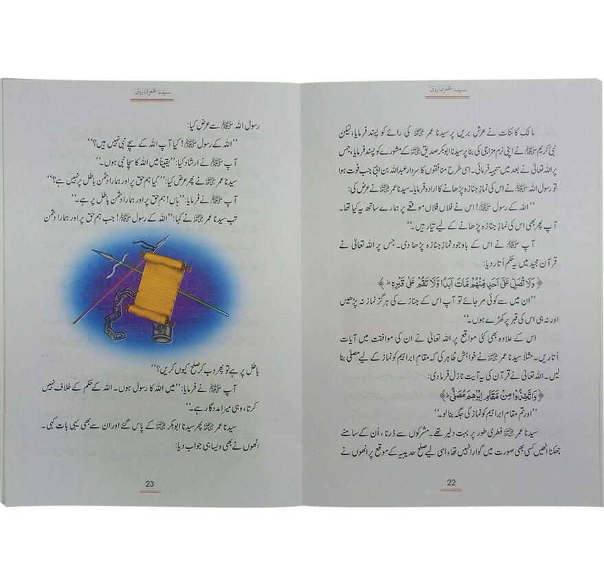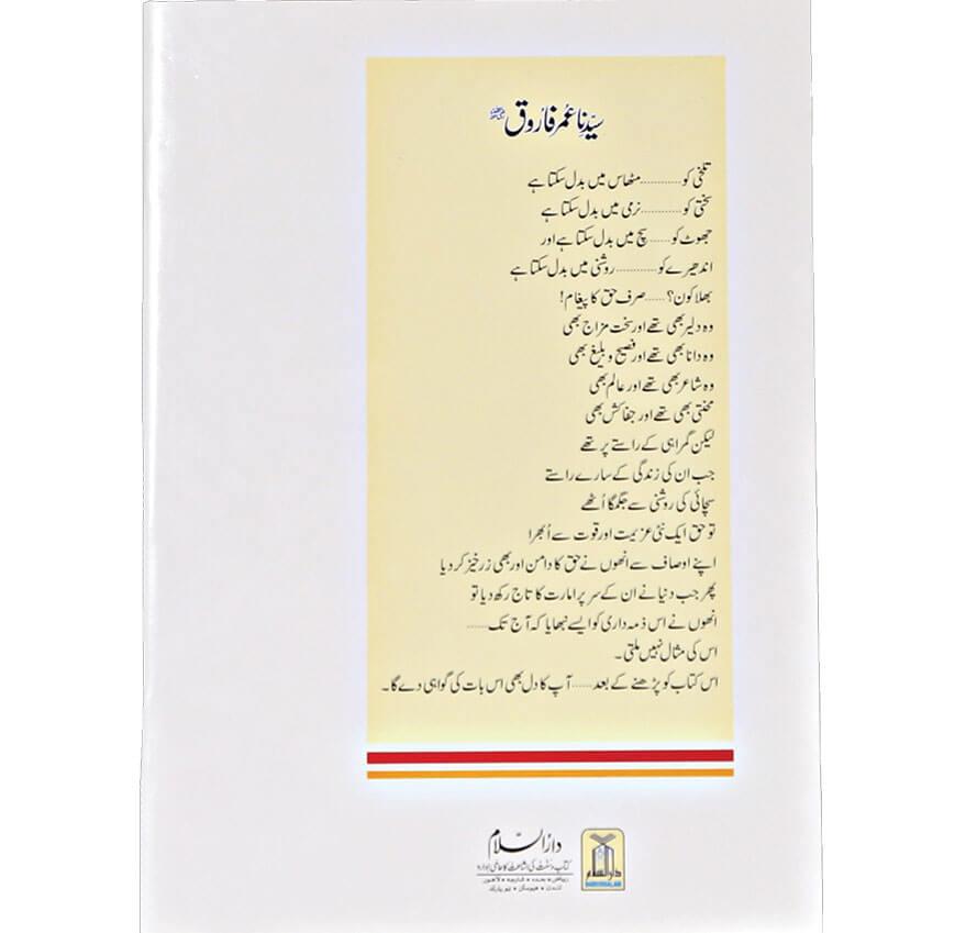 تلخی کو. مٹھاس میں بدل سکتا ہےسختی کو.نرمی میں بدل سکتا ہےجھوٹ کو سچ میں بدل سکتا ہے اور اندھیرے کو روشنی میں بدل سکتا ہے بھلا کون؟ .صرف حق کا پیغام! وہ دلیر بھی تھے اور سخت مزاج بھی وہ دانا بھی تھے اور فصیح و بلیغ بھی وہ شاعر بھی تھے اور عالم بھی محنتی بھی تھے اور جفاکش بھی لیکن گمراہی کے راستے پر تھے جب ان کی زندگی کے سارے راستے سچائی کی روشنی سے جگمگا اٹھے تو حق ایک نئی عزیمت اورقوت سے اجرا اپنے اوصاف سے انھوں نے حق کا دامن اور بھی زرخیز کر دیا پھر جب دنیا نے ان کے سر پر امارت کا تاج رکھ دیا تو انھوں نے اس ذمہ داری کوا یسے نبھایا کہ آج تک اس کی مثال نہیں ملتی ۔ اس کتاب کو پڑھنے کے بعد آپ کا دل بھی اس بات کی گواہی دے گا۔