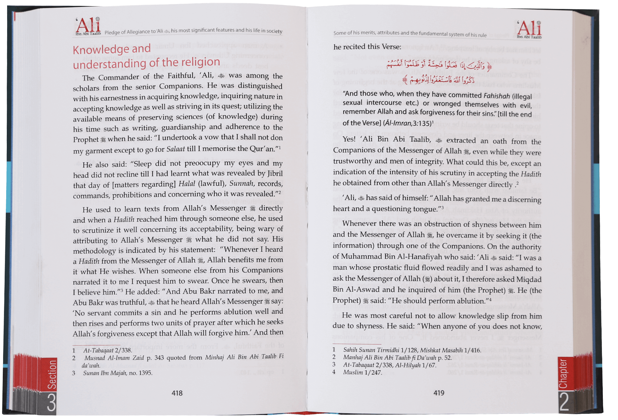 This is the fourth book in studying the reign of the Rightly Guided Caliphs. It relates the life of the Leader of the Believers, `Ali, may Allah be pleased with him, from birth until his martyrdom. The book relates with detail how he came to Islam and his most important actions in Makkah, his migration to Madinah, his life in Madinah, his campaigns and battles alongside the Messenger of Allah, his life during the era of Rightly Guided Caliphs and his swearing of allegiance and his period of Caliphate. It also discusses the internal problems that `Ali faced during his reign. It goes on to mention the events that led to the Battle of the Camel, and how all the parties involved are free from any fault. Afterward, the events of the Battle of Siffeen are mentioned, along with the relationship between `Ali and Mu`aawiyah. The book sheds light on the fallacies that are held by some deviant groups about these events and their distortion of historical truths.